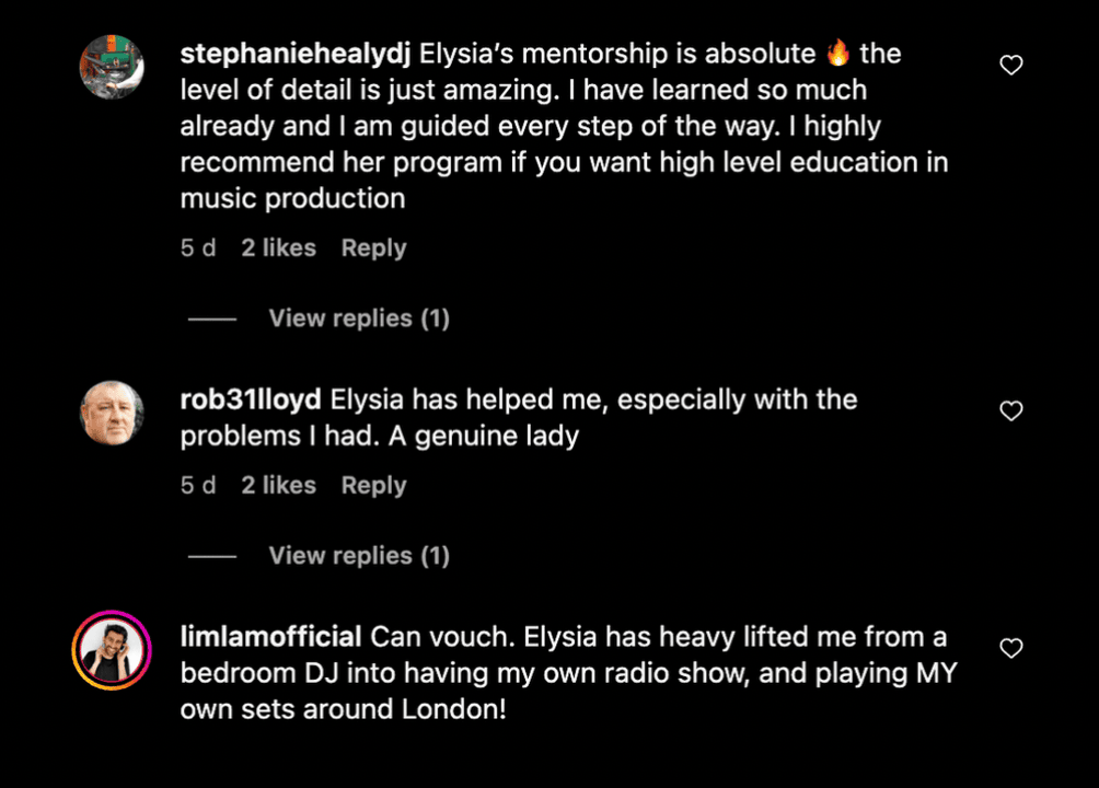 IMPORTANT: Earnings and Legal Disclaimers: We don't believe in get-rich-and-famous-quick programs. We believe in commitment, adding value and serving others, and that's what our programs are designed to help you do. As stated by law, we cannot and do not make any guarantees about your own ability to get results or earn any money with our ideas, information, programs or strategies. We don't know you and, besides, your results in life are up to you. Agreed? We're here to help by giving you our greatest strategies to move you forward, faster. However, nothing on this page or any of our websites or emails is a promise or guarantee of future success or earnings. Any financial numbers or achievements referenced here, or on any of our sites or emails, are simply estimates or projections or past results, and should not be considered exact, actual or as a promise of potential success or earnings - all numbers are illustrative only. Not all results are typical. If you have questions, email [email protected]. We look forward to you joining the Elite Music Production Programme where we believe integrity and honesty are off the upmost important in life. No matter what happens, never give up on your dreams.